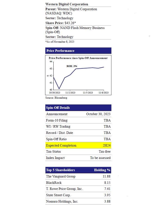 WDC expects to effect the transaction through a distribution of a Flash Memory business to WDC’s shareholders. The transaction is intended to be structured as tax-free for US federal income tax purposes. Post spinoff, WDC will continue to be publicly listed on the NASDAQ Exchange, whereas details regarding the listing of NewCo. will be announced at the later date. The transaction is expected to complete by the second half of 2024.